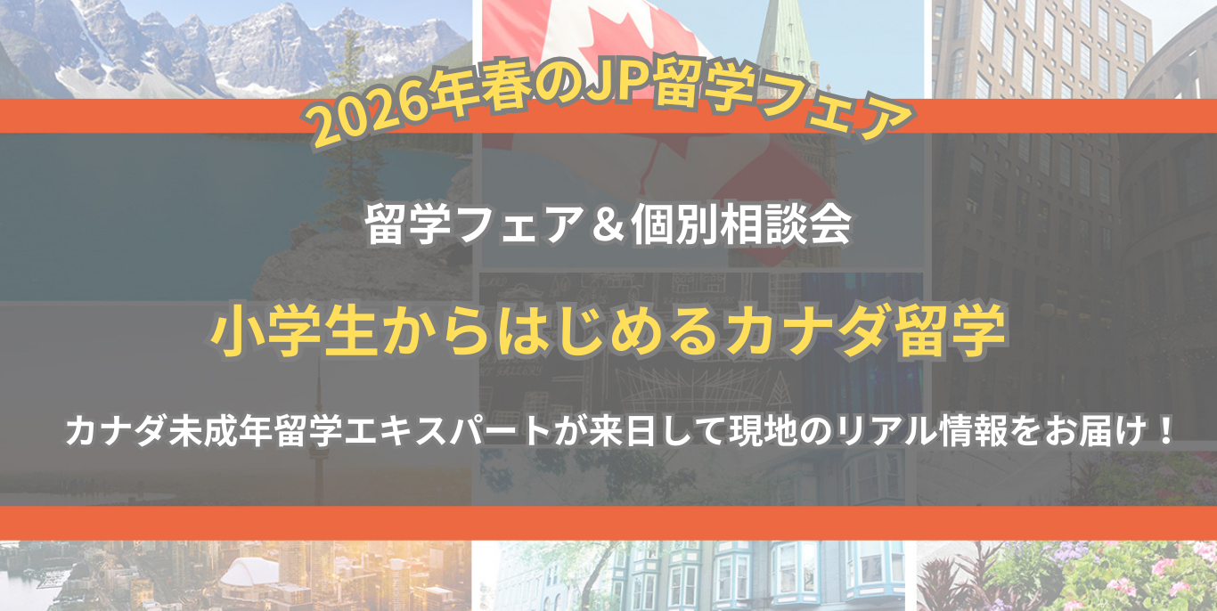 カナダ現地に本社を置くカナダ留学のプロ、未成年留学でもっとも実績のあるJP留学のカナダ現地スタッフが来日。【東京】【大阪】にて現地のリアルな最新情報をご紹介するセミナー、および個別のご相談会を開催いたします。ご来場、ご相談希望の方は事前にお申込みください。