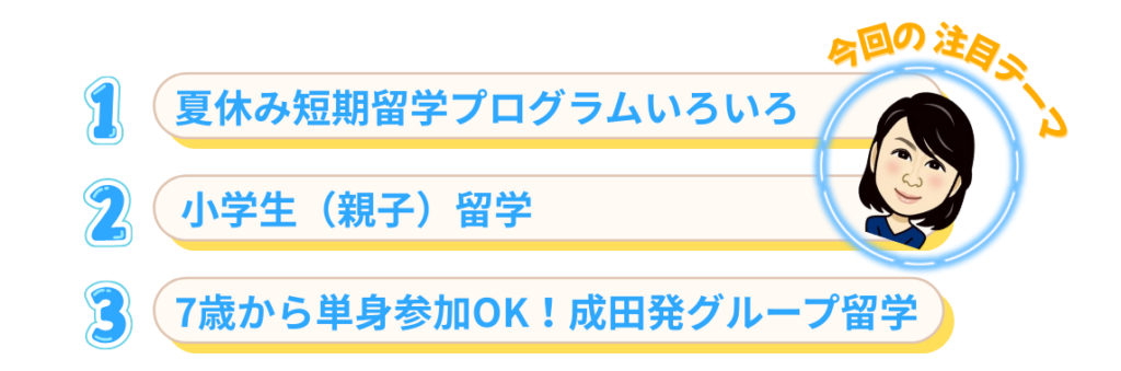 いつか子どもを海外留学させたい、将来は英語圏で進学してほしいと思ったら、お子様が小さいうちにまずは親子で留学をするのがベスト!近くで親御様が見守る中で、子どもは安心して違う言葉を使えること、世界にお友だちがいること、その楽しさをたくさん知ることができます。